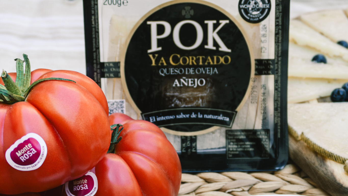 Prepara una deliciosa ensalada Monterosa con el sabor auténtico de un tomate que sabe a tomate acompañado del intenso sabor de la naturaleza con queso de Oveja Añejo POK de García Baquero.